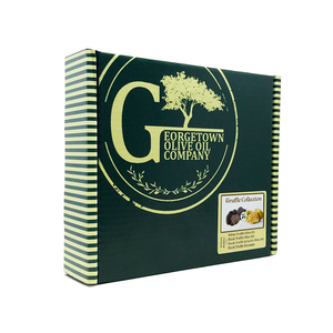 This box contains an assortment of 3 infused Extra Virgin Olive Oils and 1 Aged Balsamic Vinegar.