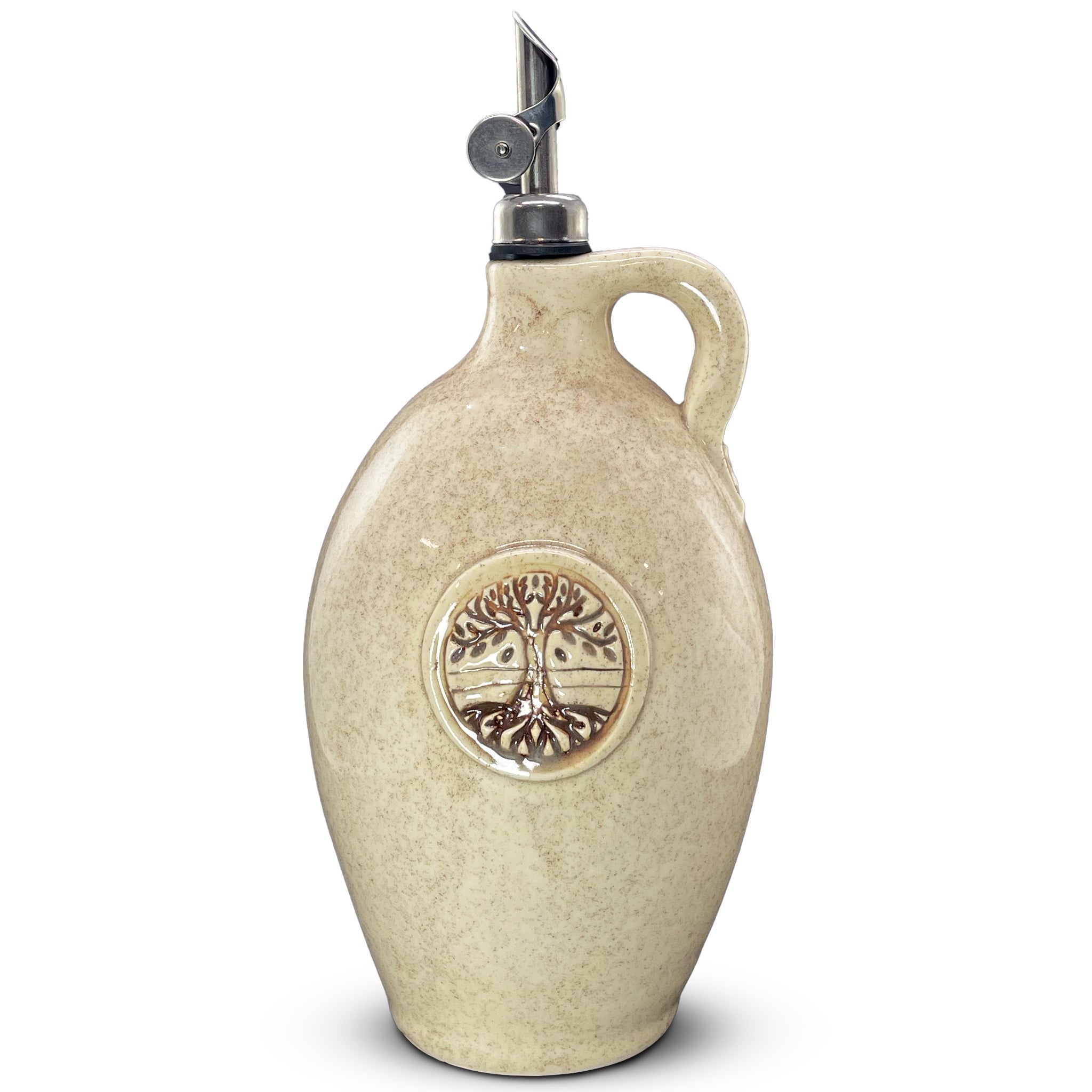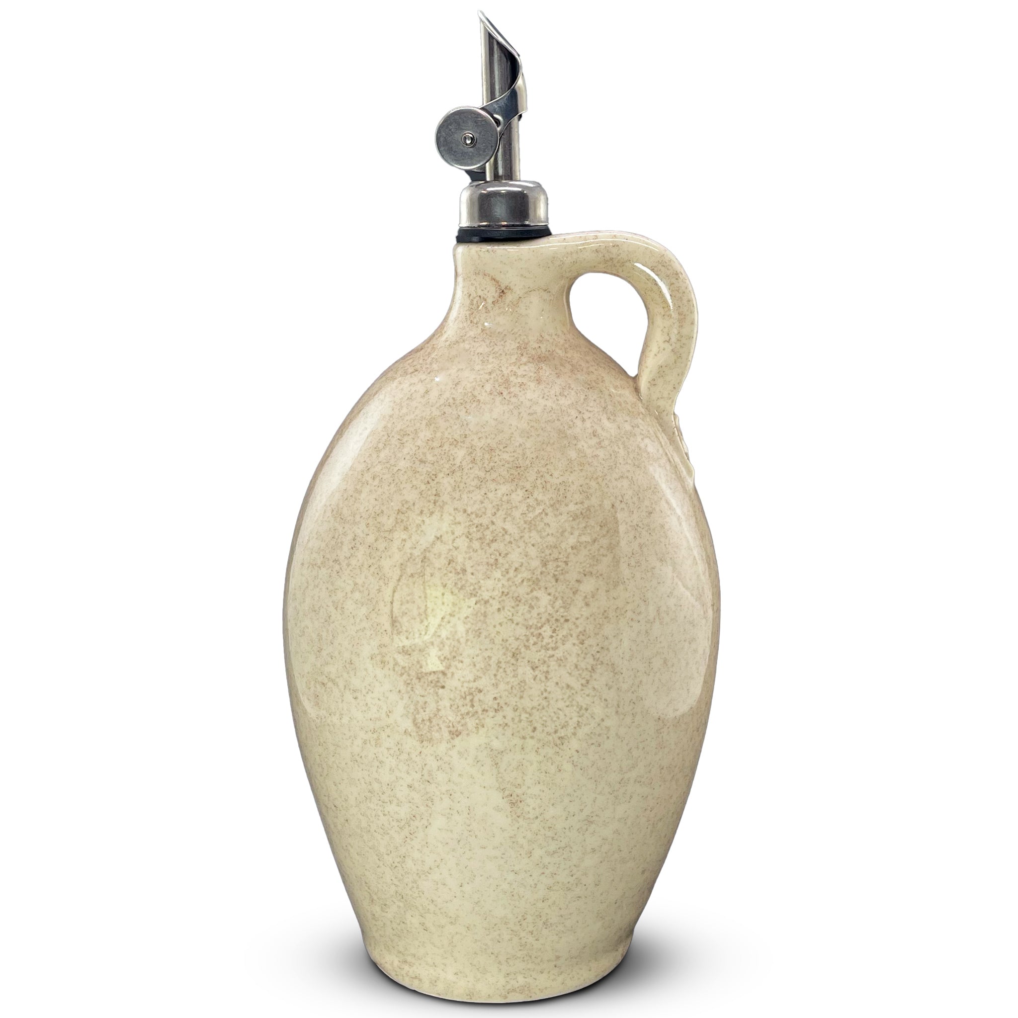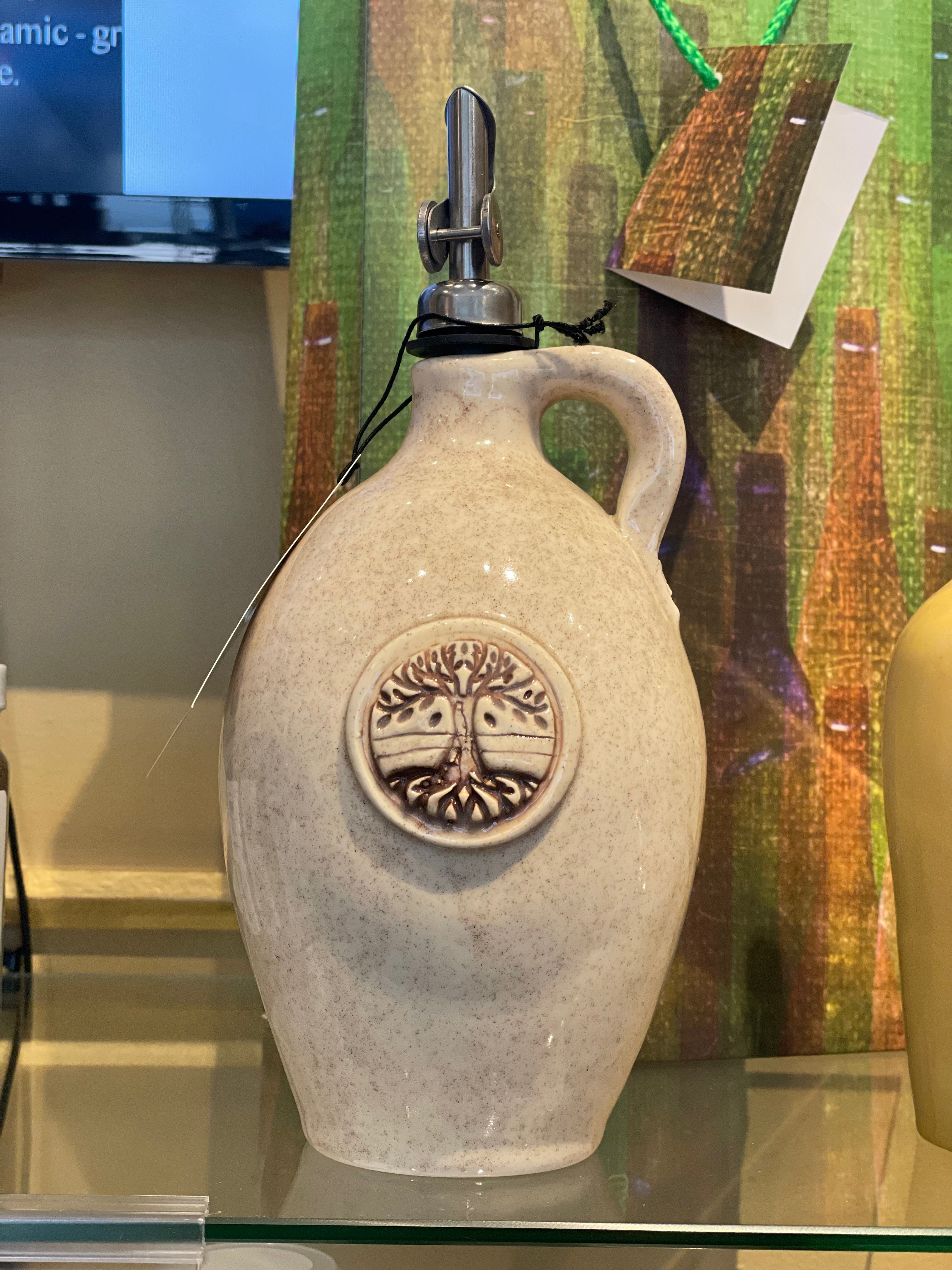 Handmade Olive Oil Cruet - Vanilla Bean 750ml - These cruets are handmade in North Carolina of locally resourced materials. They are food-safe, decorated with lead-free glazes, designed to withstand a wide range of temperatures.