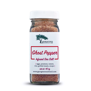 Ghost Pepper Sea Salt - this is our spiciest infused sea salt. It brings a lot of heat and flavor to the table - ideal for steak, chicken and fish. Chef's use it for extra flavor in their sauces and vinaigrettes.