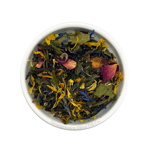 Mango Rose Green and White Tea - Green, white, and oolong teas blended with lush mango and fragrant rosebuds create a fruity and healthful tea. An afternoon delight to share with friends. Naturally low in caffeine. Serve warm or over ice.