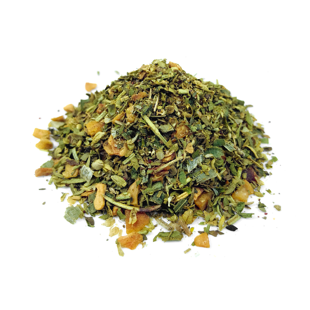 All Natural Ingredients: Vegetables (garlic, parsley, green onion), mixed spices (basil, rosemary, oregano, black pepper, thyme, sage, and chili pepper), sea salt.