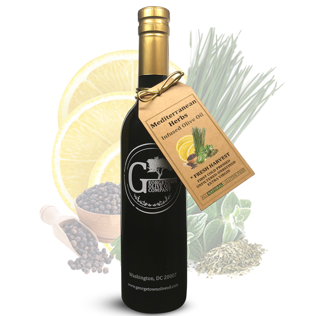 MEDITERRANEAN HERBS |  High Polyphenols Extra Virgin Olive Oil - Thanks to the liberal use of rich, quality spices, virtually all Mediterranean fare is distinctive and flavorful. This exquisitely delicious oil made with Greek Extra Virgin Olive Oil, lemon, oregano, chives, and black pepper is one of our most versatile infusions. Use it to zing up eggs, salads, lentils, or chicken and make every bite an experience.