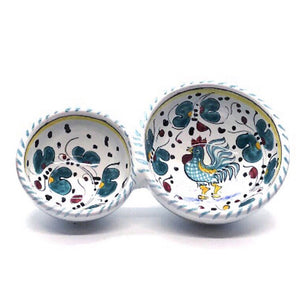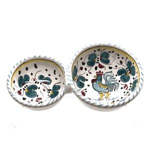 Olive Holder ORVIETO GREEN - This Deruta Olive Dish is an entertainment must have for your next get together with family and friends.Designed from extra thick Majolica Ceramic with the hostess in mind, this dish features divided compartments, beautiful artwork and versatility in use.It is perfect for serving olives, nuts, sauces, spices/herbs, spreads, condiments.