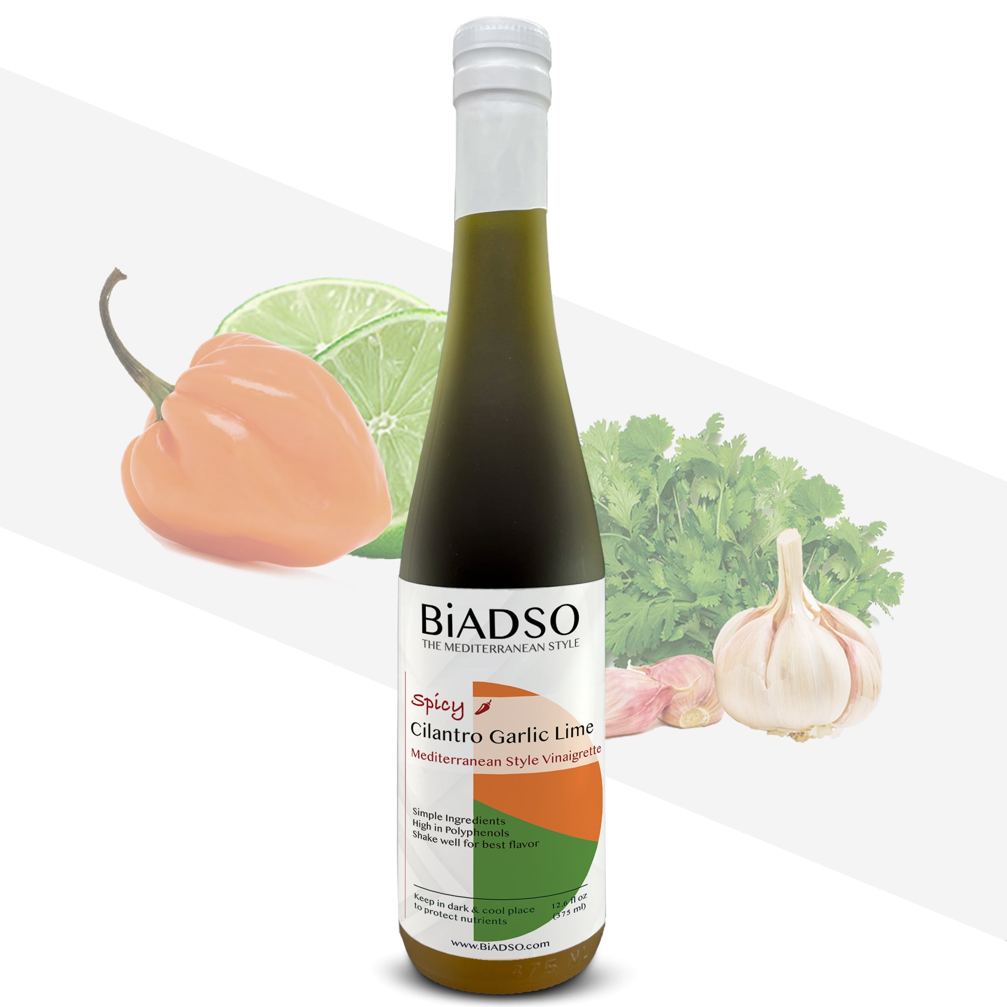 Spicy Cilantro Garlic Lime Vinaigrette - Add a touch of bold flavor to your dishes with our Spicy Cilantro Garlic Lime Vinaigrette. Made with all-natural ingredients, it's a perfect blend of spices, cilantro, garlic, and lime that will add a kick to your salads and marinades. It's non-GMO, gluten-free, and perfect for dressings, marinades, and cooking. Try it now and elevate your culinary creations with a touch of heat and a burst of flavor from our Spicy Cilantro Garlic Lime Vinaigrette.