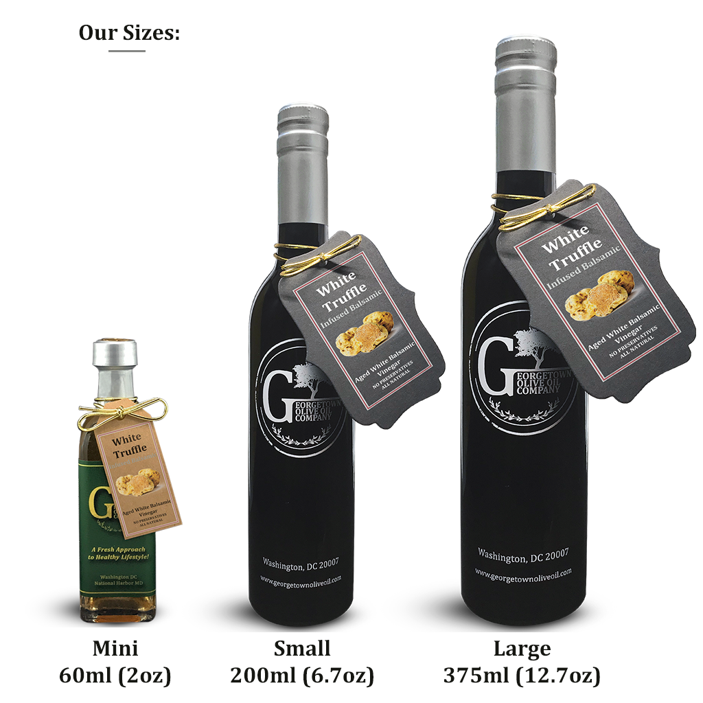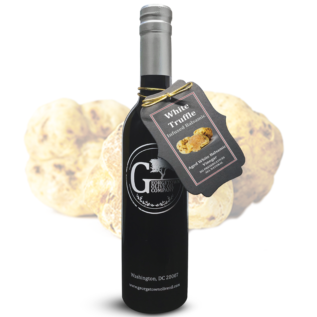 White Truffle Infused Balsamic - smooth texture with delicate, earthy truffle aroma. Add a quality touch to your favorite dishes. Add it to the broth of your favorite French Onion soup or to your favorite steak marinade. Use it to make truffle butter or add it to cream cheese for an appetizer spread. A little bit goes a long way.