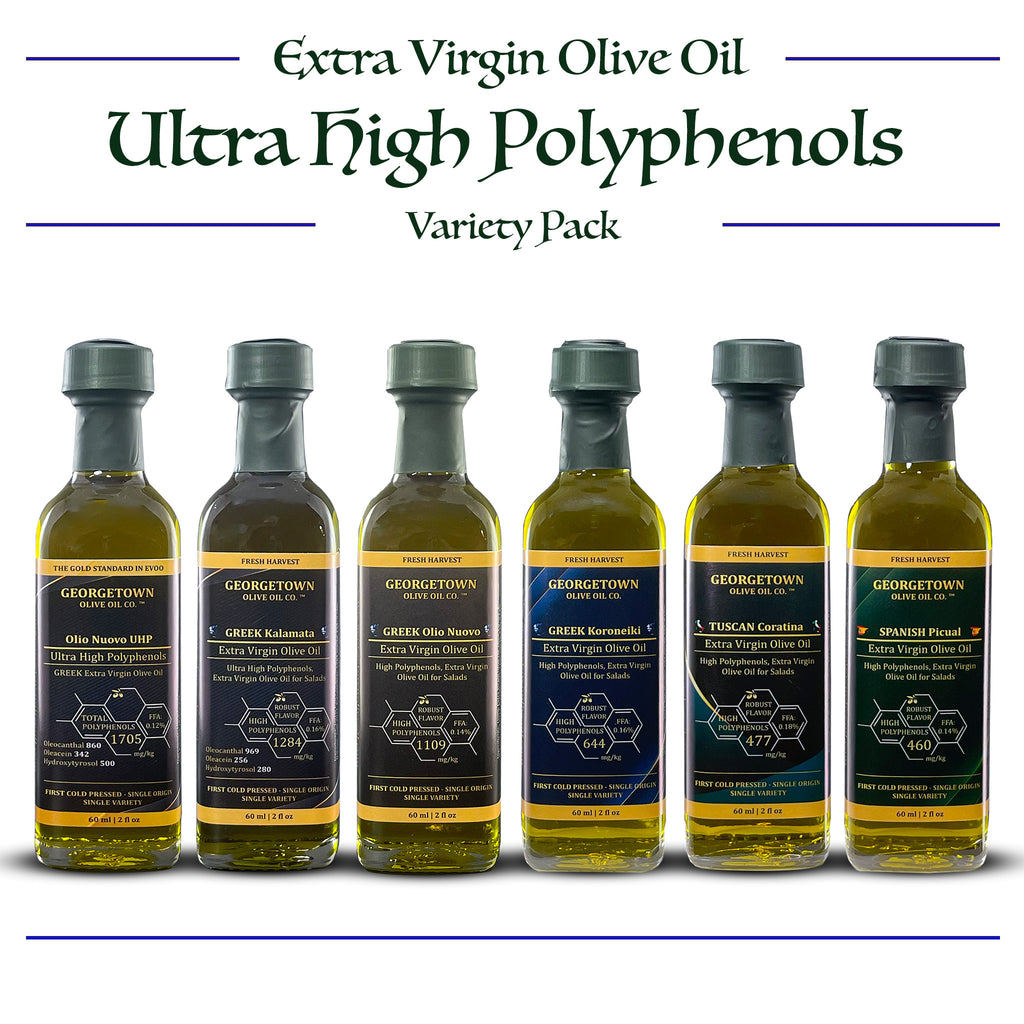 6 Bottle Variety Pack | Ultra High Polyphenols Extra Virgin Olive Oil - Discover the perfect blend of flavor and health with our 6 Bottle Variety Pack of Ultra High Polyphenols Extra Virgin Olive Oil. Enjoy the delicious Mediterranean flavors and experience the life-enhancing benefits of high polyphenols in each bottle. Get the best olive oil on the market and taste the difference!