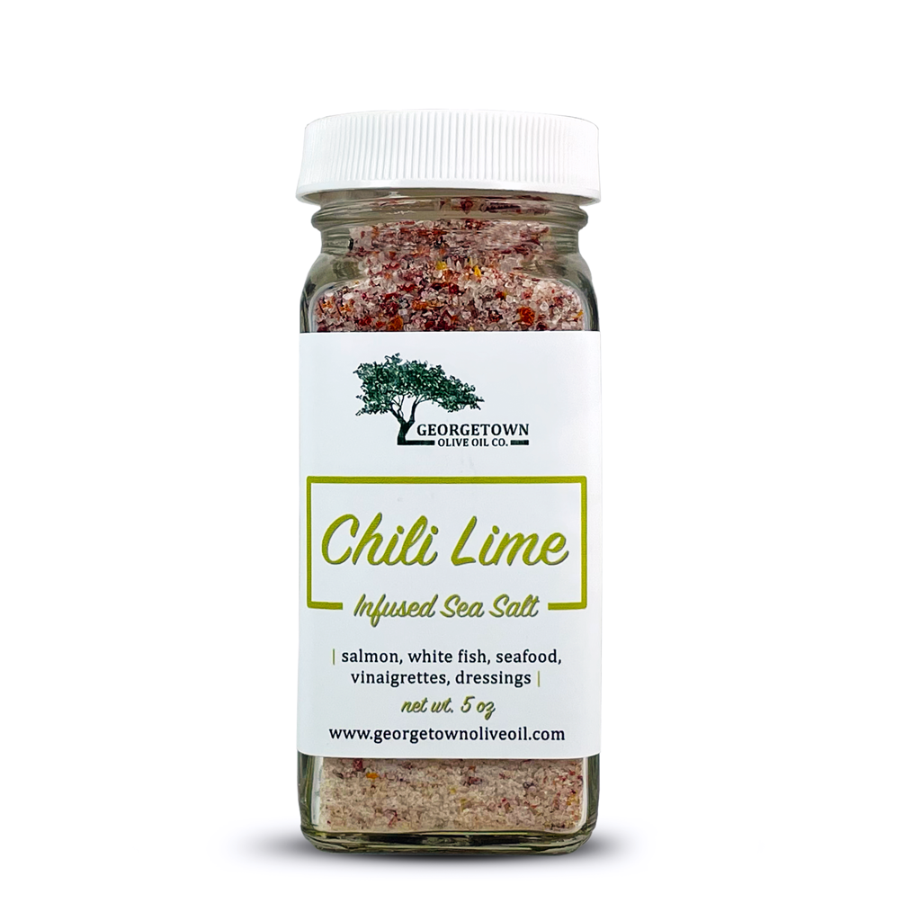 Chili Lime Sea Salt - A marvelous mixture of sea salt with red chili pepper flakes, lime peel, and smoked paprika forming a spicy, smoky goodness.