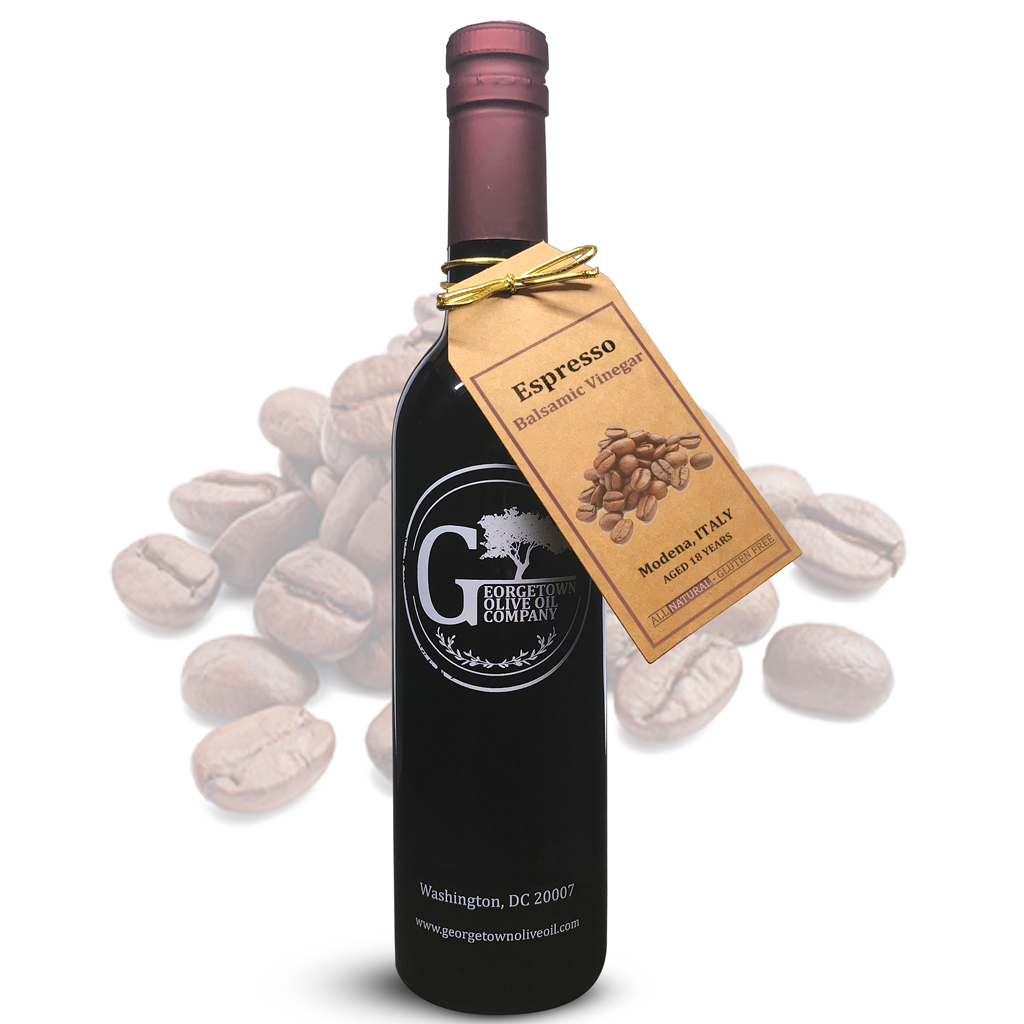 Espresso Balsamic Vinegar displays an amazingly complex flavor - it's sweet, rich and bitter. This aged Balsamic Vinegar is amazing in marinades and makes a fantastic glaze or bbq base for pork, beef or chicken.