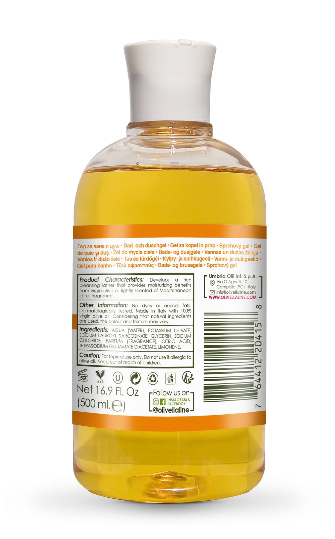 Our Orange Olivella Bath and Shower Gel has a great citrus aroma of orange that stays with you and awakens your senses. Made from 100% virgin olive oil it contains vitamins A and E, which will keep your skin healthy and nourished. The fruity scent will make you feel like you are walking in a beautiful orange garden in Sicily.