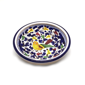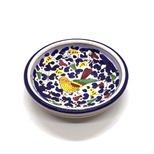Olive Oil Dish - ARABESCO - This Arabesco piece is hand-made and painted in Deruta, Italy. The pattern originates in a 17th century Persian motif with Arabsco -the Whimsical Bird, surrounded by foliage. Enjoy your olive oil, spreads or dipping sauces in this perfectly shaped dipping dish. It's fully glazed for lasting beauty.