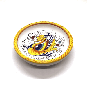 One of Deruta`s oldest patterns, this absolutely stunning Raffaellesco Dragon is masterfully hand-painted by local artisans. This beautiful dish is sure to add elegance to your table, enduring the elegant arabesques of the famous Raphael`s frescoes. Perfect for olive oil dipping, dipping sauces and spreads. Our beautiful Raffaellesco dish can also be used as display piece.