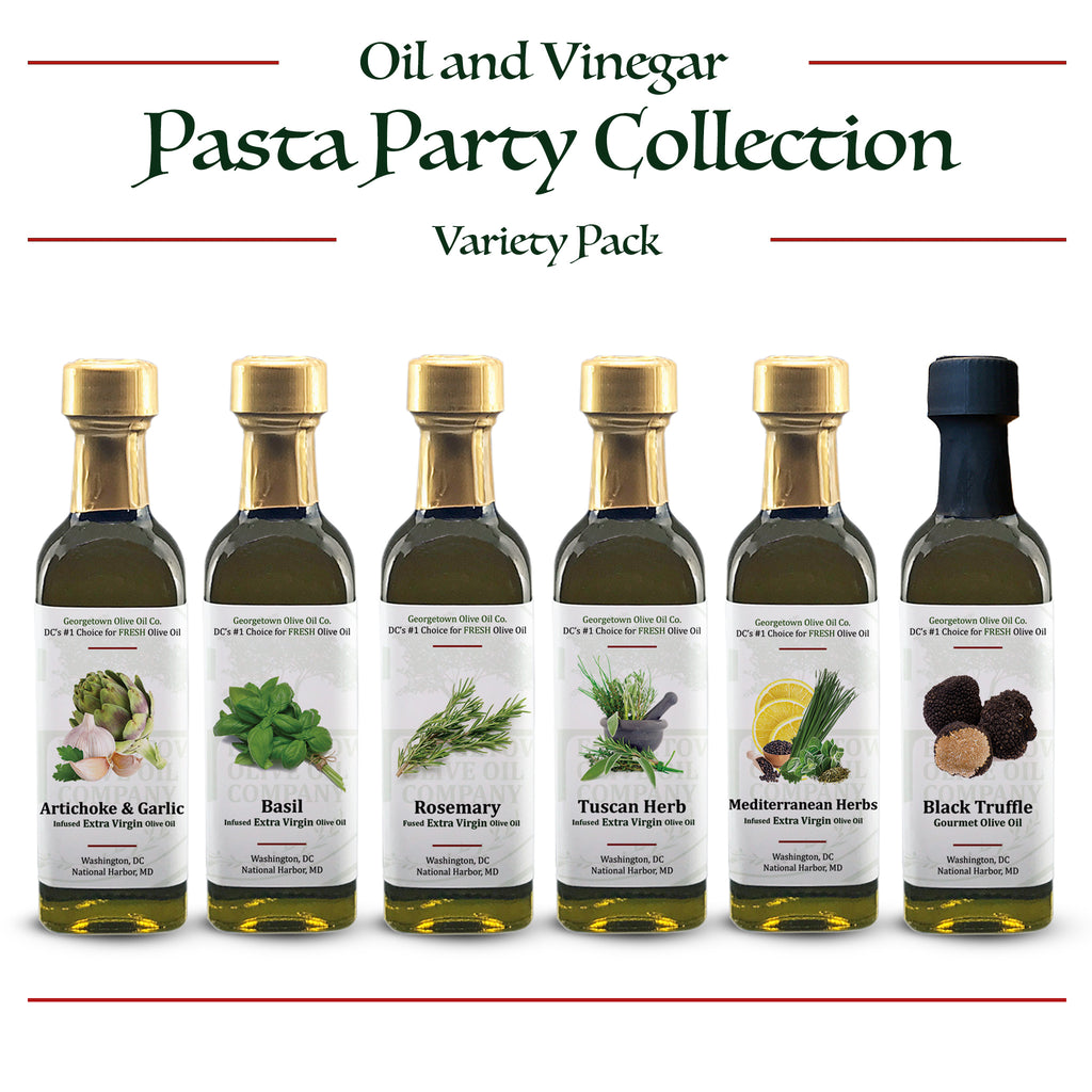 Pasta Party Collection - Olive Oil: this box contains an assortment of six olive oils and it is perfect for anyone wishing to explore some tasty Mediterranean flavors. Versatile gift for cooks and pasta lovers alike.