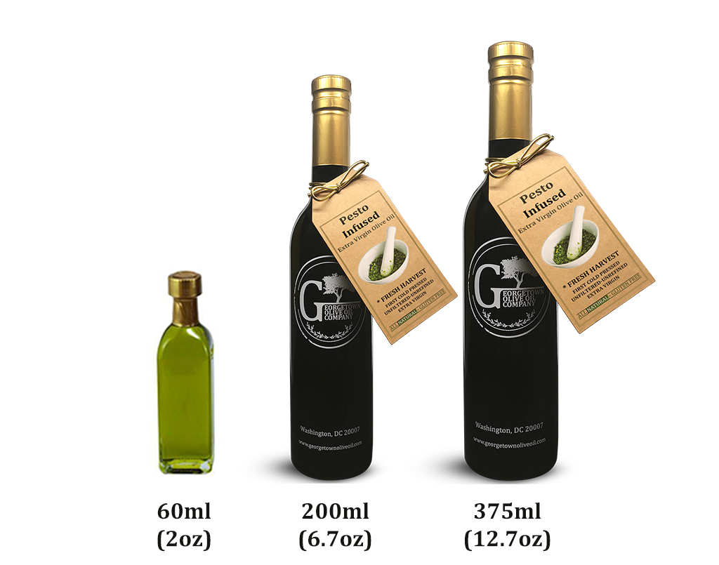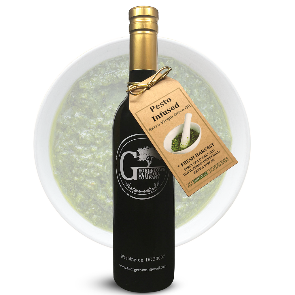 PESTO Infused | High Polyphenols Extra Virgin Olive Oil is jam-packed with fresh basil, parmesan cheese, and a touch of garlic. It’s perfect for pasta, drizzled on a homemade Foccacia, white pizza, Caprese salad, grilled eggplant, or even just as a snack for bread dipping.