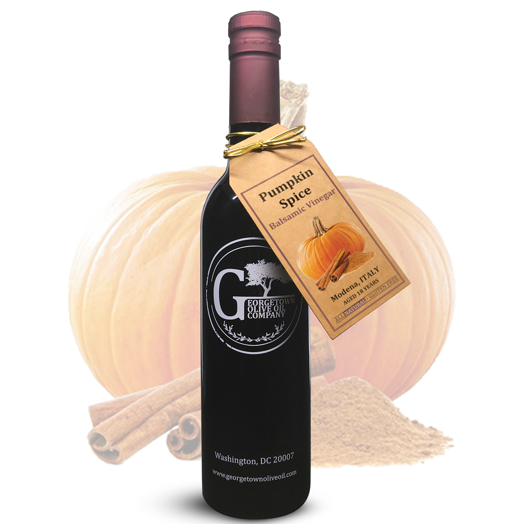 Pumpkin Spice Balsamic Vinegar - one of our seasonal favorites, it's perfect for all kinds of holiday dishes. We've combined allspice, nutmeg and cinnamon to create this flavor. It is great drizzled on root vegetables, desserts, squash and fall breads.