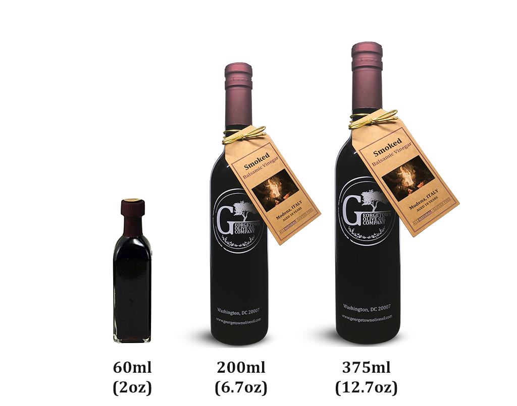 Smoked Balsamic Vinegar - it has a deep brown coloring and rich, smooth texture. This smoky, subtle wood flavored balsamic is the perfect addition to any cookout. Tastes delicious in baked beans and drizzled over grilled vegetables or steak. Use as a barbecue sauce or as a secret ingredient to your smoky vinaigrette.