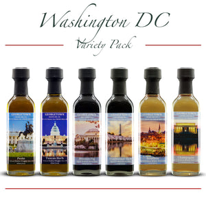 Washington DC Oil and Vinegar Variety Gift Pack - We are proud to offer our customers an exclusive variety pack of six bottles of olive oil and balsamic vinegar from Washington DC. This variety pack includes 6 different designs of DC's most memorable sites as well as 6 of our most popular flavors. This gift set makes a thoughtful gift for any occasion.